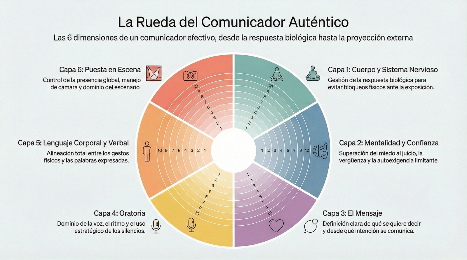 Su misión es clara: ayudarte a dominar tu mensaje para que puedas impactar, liderar y convertirte en un referente en tu sector a través de la comunicación delante de una cámara o en cualquier contexto presencial.